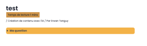 Pour ajouter une question, il suffit d’appuyer à nouveau sur le bouton. Le rendu en ligne présente la ou les questions avec une flèche avant la question. Lorsque l’on clique sur la question, le bloc se déroule et fait apparaître la réponse.