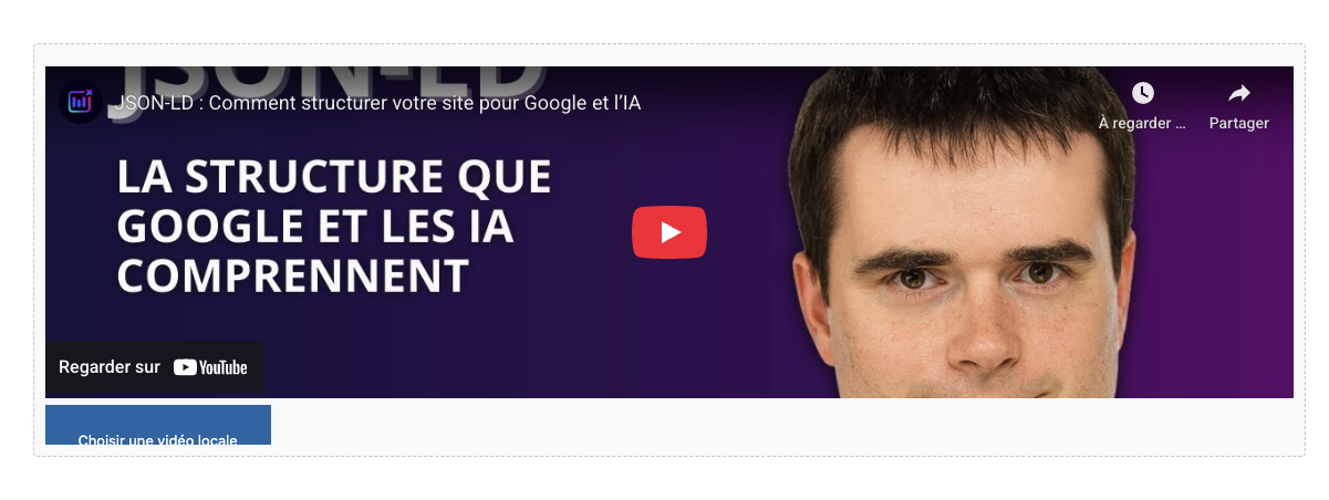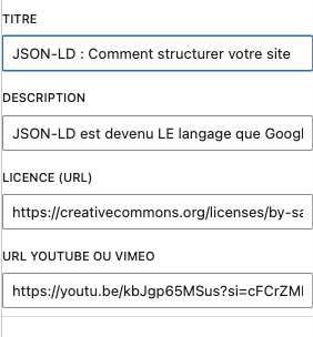 Soit on rajoute une vidéo à importer depuis la bibliothèque des médias ou à télécharger ou on saisit dans la colonne à droite les informations demandées :