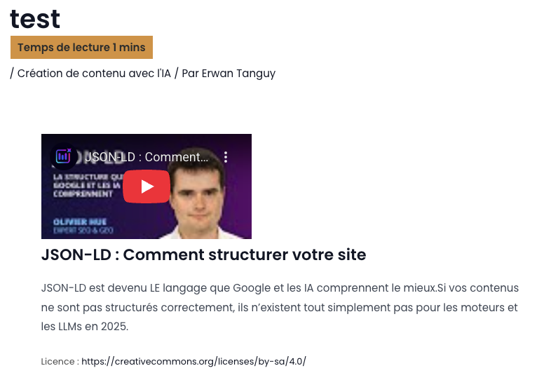 À droite, se trouve la zone d’insertion des contenus à destination du SEO et GEO :